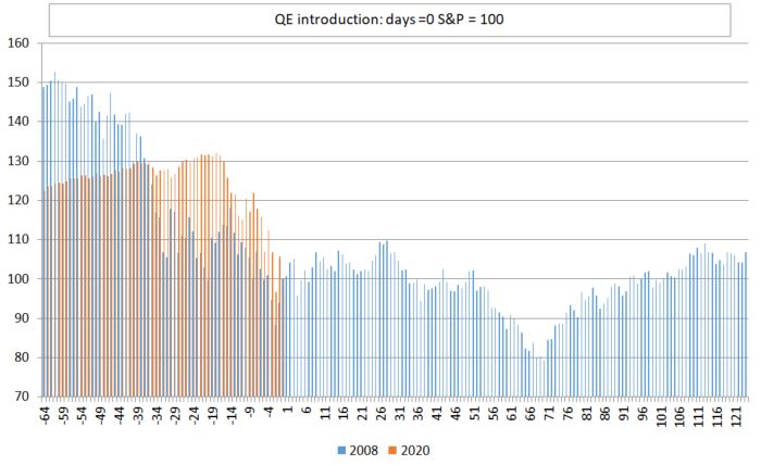 Ar putea Fed ”să repare” situația? În 2008, FOMC a lansat programul QE într-o etapă mult mai avansată a crizei, iar piețele au avut nevoie de aproape 3 luni pentru a opri corecția. Sursa: Macrobond, XTB Research