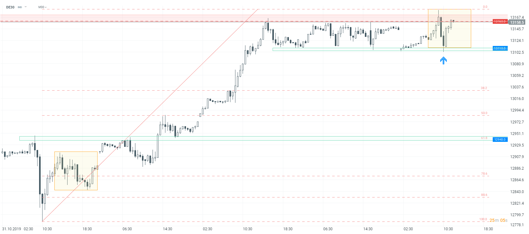 DE30 se află din nou în vecinătatea rezistenței cheie de la 13160 de puncte