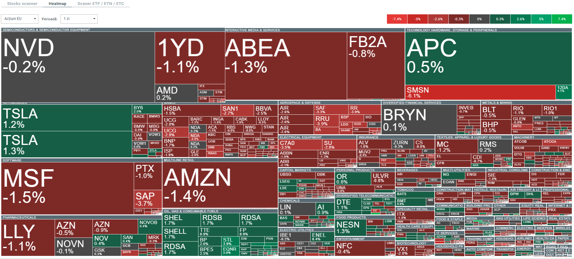 - Pe piețele bursiere nu observăm o direcție comună a cotațiilor, deși în ultimele minute tendința a devenit mai descendentă. Indicele german DE40 pierde în prezent 0,8%, în timp ce indicele francez FRA40 scade cu 0,7% la sfârșitul primei faze a tranzacționării de marți. Indicele polonez W20 se descurcă foarte slab, înregistrând scăderi de 1,1% (liderul scăderilor pe continent).