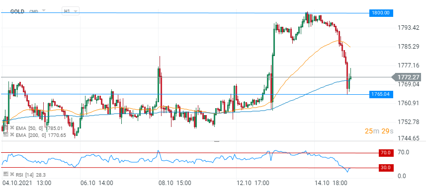 Aurul este în drum către cel mai mare câștig săptămânal din august, după ce a primit un impuls din partea indicelui prețurilor de consum din SUA. Datele au arătat că inflația ridicată persistă în cea mai mare economie a lumii, determinând o reducere a randamentelor titlurilor de stat din SUA pe 10 ani, pe măsură ce traderii au evaluat potențialul răspuns al Rezervei Federale. Indicele prețurilor de consum din SUA a crescut în septembrie cu mai mult decât era prevăzut, reluând un ritm mai rapid de creștere și subliniind persistența presiunilor inflaționiste în economie. În plus, date de joi au arătat că prețurile la fabrică din China au crescut în septembrie cu cel mai rapid ritm în aproape 26 de ani, aspect care s-a adăugat riscurilor inflaționiste la nivel global.