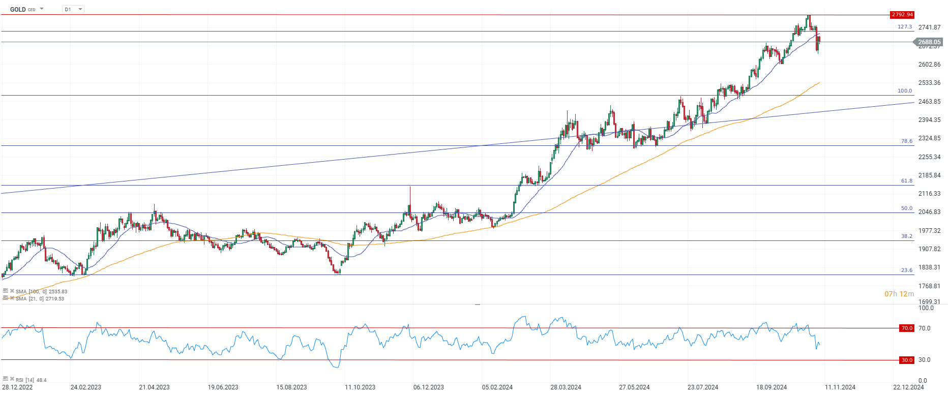 O mare parte a corecției ar putea fi pusă pe seama aprecierii puternice a dolarului american. Iar acest lucru ar putea fi pus pe seama saltului brusc al randamentelor obligațiunilor, investitorii temându-se că taxele vamale și reducerile fiscale promise de Trump vor duce la o reapariție a inflației. De atunci, atât dolarul, cât și randamentele obligațiunilor au revenit la niveluri mai rezonabile. Acest lucru a ajutat aurul să găsească un nivel de suport și să înregistreze o ușoară recuperare ieri.