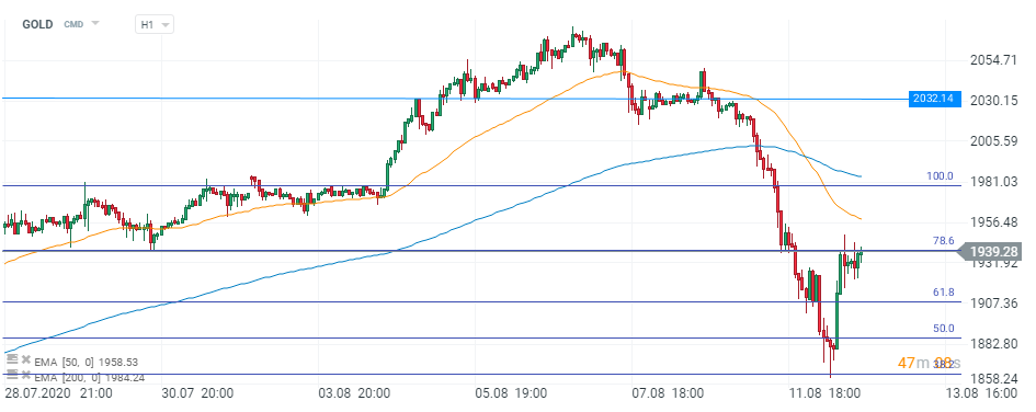 O astfel de mișcare era așteptată de către investitori, având în vedere amplitudinea inițială a secvenței ascendente. Astfel, pare a fi o corecție, în contextul în care situația rămâne optimistă pentru aur. Acest aspect este sugerat și de recuperarea puternică a aurului. Sentimentul nu a fost deteriorat și, extrapolând, a apărut o oportunitate pentru investitorii care doreau să intre pe piață, dar care așteptau o corecție a prețului, având în vedere că se afla în zona maximelor istorice.