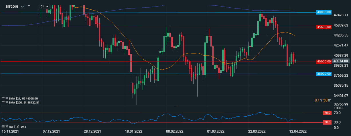 Bitcoin a revenit deasupra zonei de susținere de la 40.000 USD, care este reprezentat de minimele din primele trei luni ale anului. Acțiunea actuală a prețurilor este, totuși, un semn de alarmă în rândul traderilor.