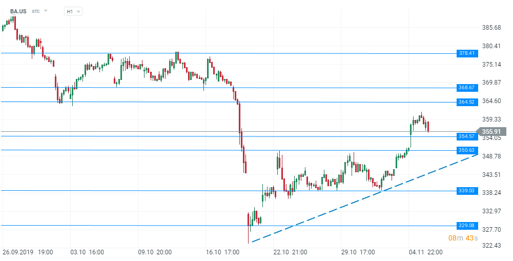 La mijlocul săptămânii investitorii par a fi mai precauți, lucru care se observă din o evoluție destul de timidă a majorității indicilor bursieri importanți. Deși informațiile sugerează că negocierile comerciale decurg într-o manieră constructivă și că atingerea unui consens pare a fi tot mai aproape, traderii au devenit mai reticenți cu privire la veridicitatea acestor detalii dar și la ceea ce va presupune acordul final și ce problematici va aborda, întrucât nu au fost publicate foarte multe informații cu privire la componența documentului. În acest context destul de calm vom analiza o companie care traversează o perioadă destul de tulbure, Boeing. Firma se află într-o criză după problemele pe care le are cu modelul de aeronavă 737 Max, care nu a primit autorizația de zbor după două accidente majore. În ultimele zile, producătorul de aeronave a făcută o declarație publică în care menționa că zeci de aeronave Boeing 737 mai vechi au fost oprite la sol la nivel global după ce inspectorii au descoperit fisuri în componenta ce unește aripile de fuzelaj. Totuși, în ultima perioadă a fost observată o ușoară tendință de revenire a prețului alimentată de mai multe știri optimiste cu privire la companie. În primul rând, Președintele Consiliului de Administrație, David Calhoun, i-a oferit un vot de încredere CEO-ului Dennis Muilenburg. Acesta a declarat că, din perspectiva consiliului, CEO-ul a lucrat ca la carte și a subliniat faptul că nu el a creat această problemă. În plus, a evidențiat spiritul său de lider în contextul crizei din jurul modelului 737 Max și a spus că nu a fost destul de apreciat efortul acestuia de a obține aprobările necesare din partea instituțiilor de reglementare care să permită modelului să-și reia activitatea.