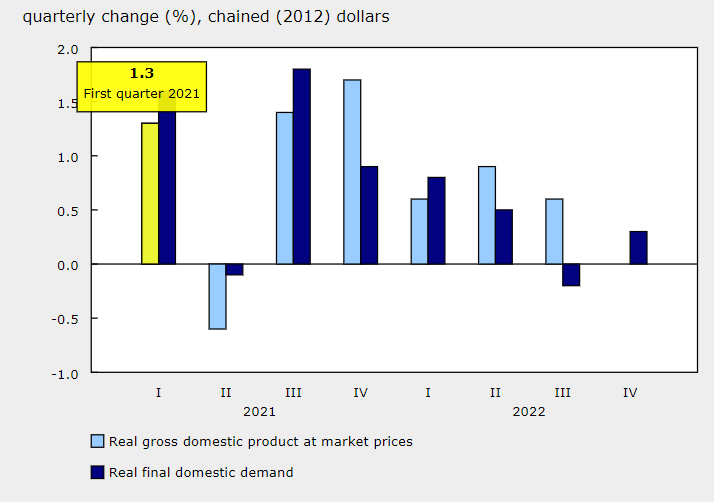 Ultimele cifre pun capăt unui ciclu de cinci trimestre de creștere consecutive. Sursa: Statistics Canada