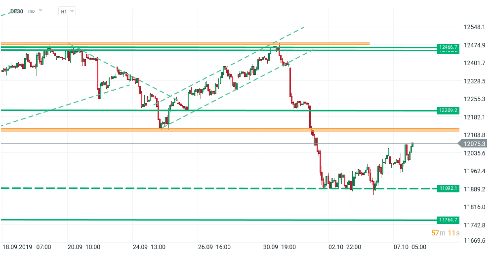 Sunt datele din Germania severe? Scăderea de 0.6% a comenzilor industriale în ritm lunar vine după o pierdere în august de 2.1%. Este o raportare ce oferă perspectivă rezervată asupra sectorului industrial, fapt ce nu încurajează așteptări pentru o înseninare rapidă a cerului celei mai mari economii europene. Dimpotrivă, pare a se subția zona-tampon oferită de un sector al serviciilor aflat încă pe creștere. Pe de altă parte, abia din noiembrie intră în acțiune programul de injecție de lichiditate al BCE. Vom vedea derulându-se, însă, o temere în creștere asociată cu relațiile cu SUA: decizia WTO și impunerea de sancțiuni comerciale de 7.5 mld. de dolari Europei începând cu 18 octombrie nu sunt de trecut cu vederea ca semnal, chiar dacă impactul economic real este unul limitat. Încrederea investitorilor potrivit Sentix a s-a retras la cel mai scăzut nivel de după 2013, dar bursa germană se hrănește din optimismul de peste Ocean, aliniindu-se avansului din SUA. Un raport al WSJ despre achizițiile Chinei de bunuri agricole americane a făcut ca investitorii să răsufle ușurați. Reper important de rezistență este zona 12125 - 12130 de puncte.