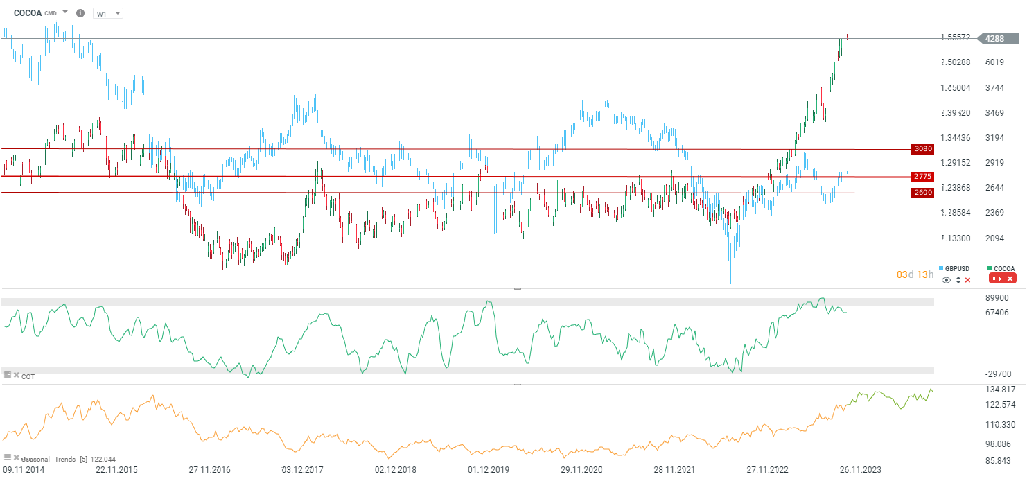 Piața de cacao a avut un an fenomenal, dar nu din cauza cererii excesive, ci mai degrabă din cauza unor probleme semnificative de aprovizionare. Bolile și condițiile meteorologice nefavorabile au cauzat probleme în ceea ce privește livrările către porturile din țările din Africa de Vest, iar această tendință este așteptată să continue pentru tot restul sezonului 2023/2024. În primul trimestru al acestui sezon (care se va încheia în al patrulea trimestru calendaristic), se anticipează o scădere de aproximativ 30% a livrărilor către porturile din Coasta de Fildeș. Este demn de remarcat faptul că țările din Africa de Vest reprezintă 70% din producția mondială de cacao. În ciuda celor menționate mai sus, cererea rezistă totuși bine și își revine după declinul legat de COVID. Deși prețul actual poate părea excesiv, este important de observat că prețurile mai mari nu duc la o creștere semnificativă a investițiilor în noi plantații deoarece prețul pentru agricultori rămâne încă scăzut, adesea aproape de costurile de producție, care variază între 1.500 și 2.000 USD pe tonă. În condițiile în care prețul actual depășește 4.000 USD pe tonă, suma primită de fermierii din Ghana rămâne sub 2.000 USD pe tonă.