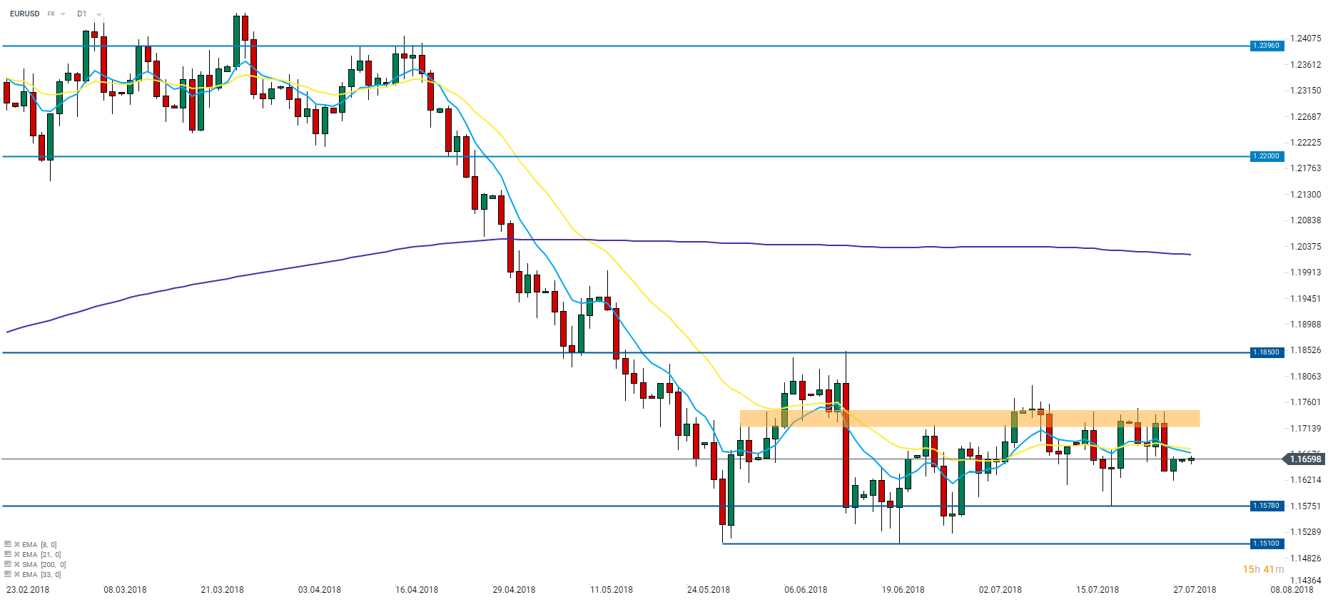 Cotația EURUSD nu a reușit încă să spargă zona de rezistență situată între 1,1715-1,1745. Totuși, perechea poate primi un alt imbold în această săptămână, deoarece vor fi publicate câteva rapoarte decisive pentru ambele monede valutare. Sursa: xStation5