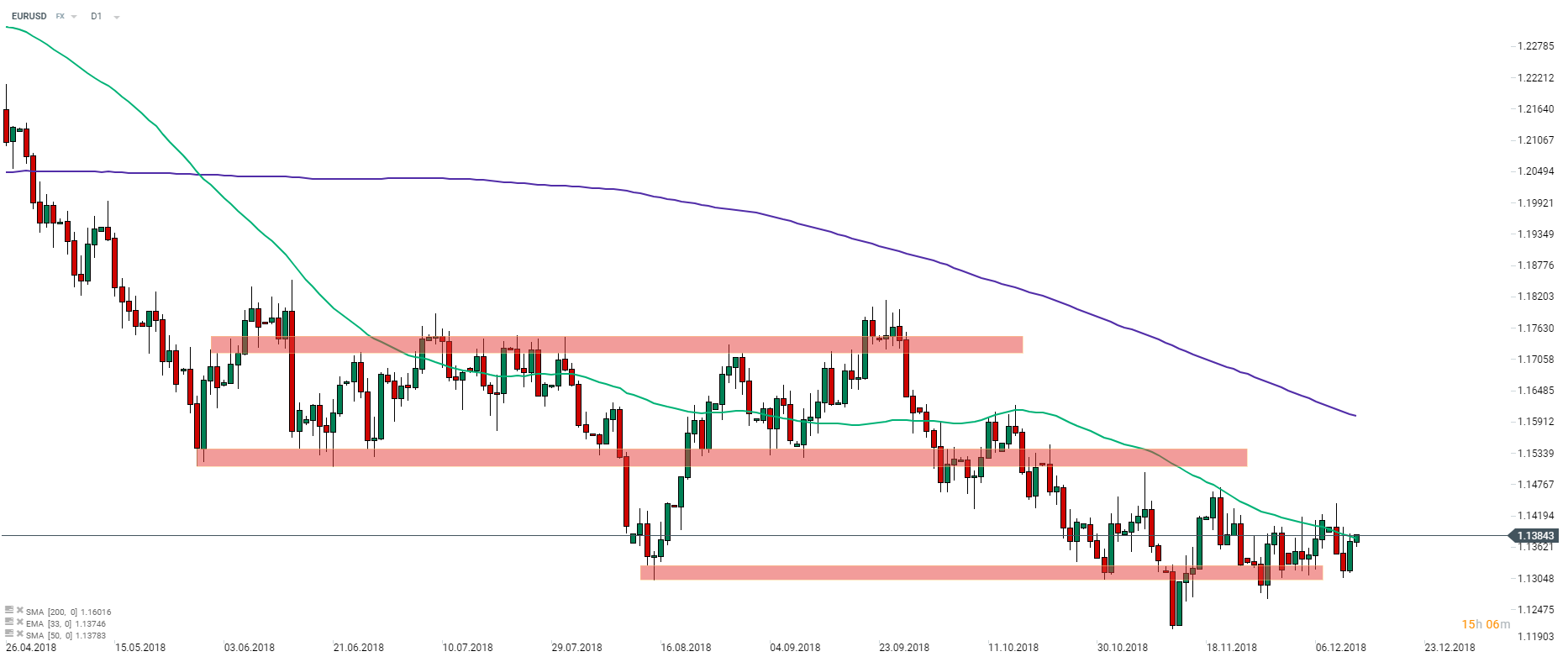 Cotația EURUSD continuă să oscileze în intervalul limitat de nivelul 1.13 și media mobilă de 33 de perioade (linia verde de pe graficul de mai sus). La momentul scrierii articolului, perechea testează media mobilă. Potențialele comentariile ale lui Mario Draghi ar putea determina ca prețul să închidă deasupra acestei zone. Sursa: xStation5
