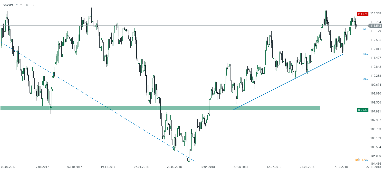 Cotația USDJPY a testat deja un nivel tehnic cheie de rezistență. Rezultatele mai slabe din SUA ar putea reprezenta o ușurare pentru cumpărătorii de JPY. Sursa: xStation5