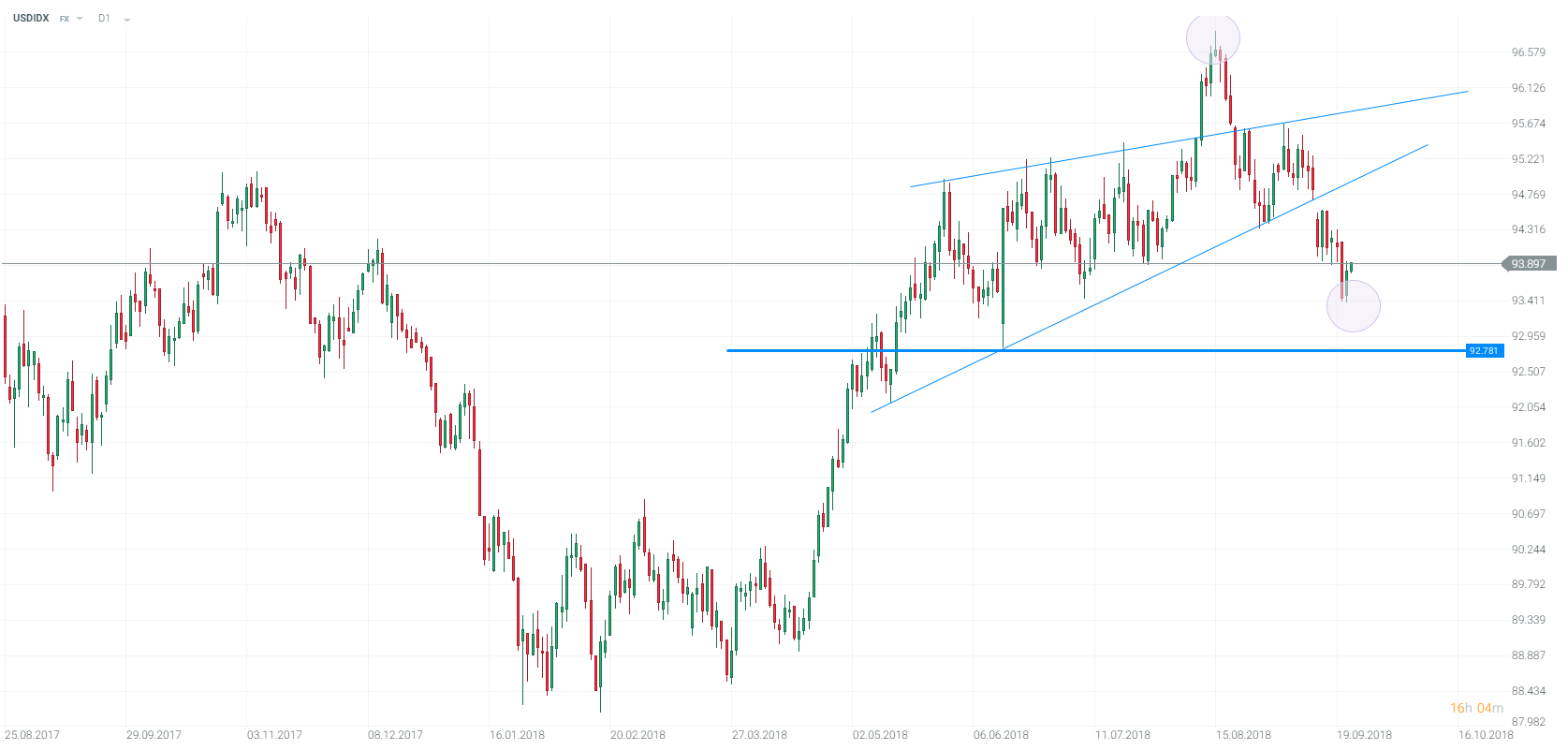 Se așteaptă ca FOMC să majoreze ratele de dobândă în timpul întâlnirii din septembrie cu încă 25 de puncte de bază. Deoarece acest lucru este cert, atenția investitorilor se va îndrepta mai mult asupra estimărilor și a graficului ”dot” publicate împreună cu decizia. Participanții la piață vor analiza o serie nouă de previziuni pentru a observa dacă bancherii centrali americani au luat în considerare ultima deteriorare a dinamicii inflației și majorarea cifrelor privind creșterea salariilor. Întrucât conflictul comercial dintre cele mai mari economii din lume s-a intensificat recent, această temă ar putea reprezenta unul dintre punctele importante ale acestei întâlniri. Piețele influențate: US500, TNOTE, USDIDX.