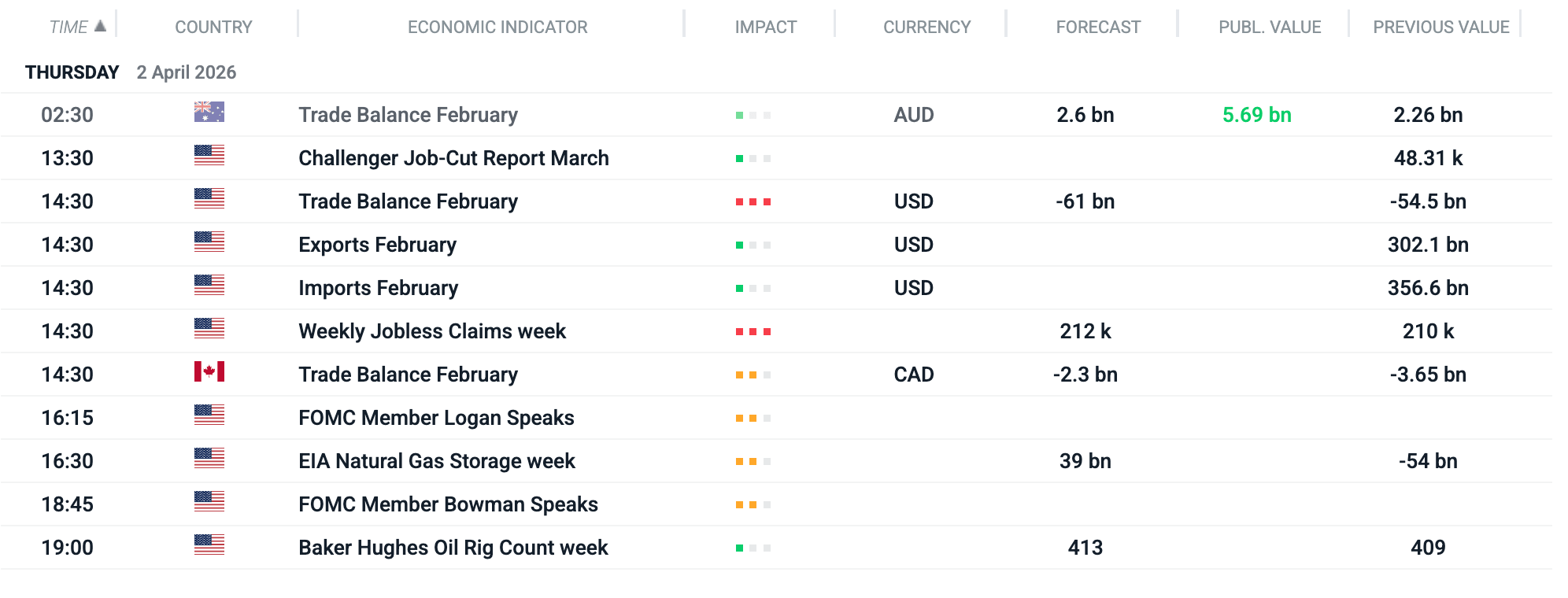 Cu toate acestea, câteva date programate pentru joi ar putea avea un impact semnificativ asupra volatilității, în special pentru dolarul american. Pe lângă balanța comercială, în SUA vor fi publicate rapoarte mai puțin importante privind piața muncii, completând imaginea provocărilor actuale cu care se confruntă Fed înainte de raportul privind locurile de muncă din sectorul non-agricol (NFP) de mâine și de decizia privind rata dobânzii programată pentru sfârșitul lunii.