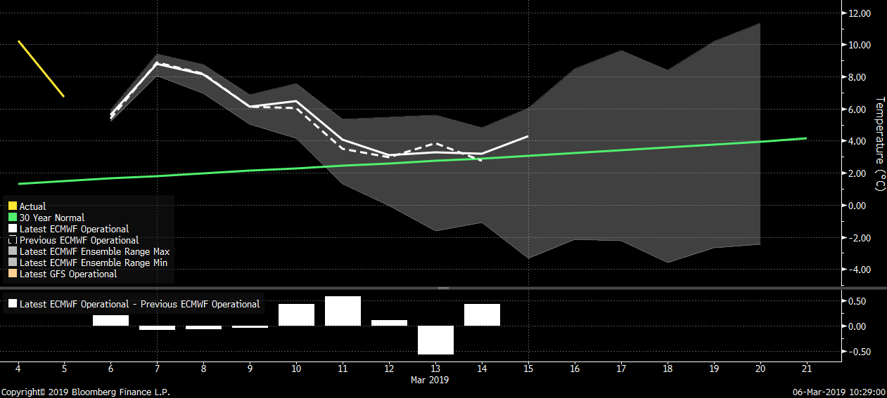 Se așteaptă ca în următoarele două săptămâni, vremea să fie destul de calde în Europa. Sursa: Bloomberg