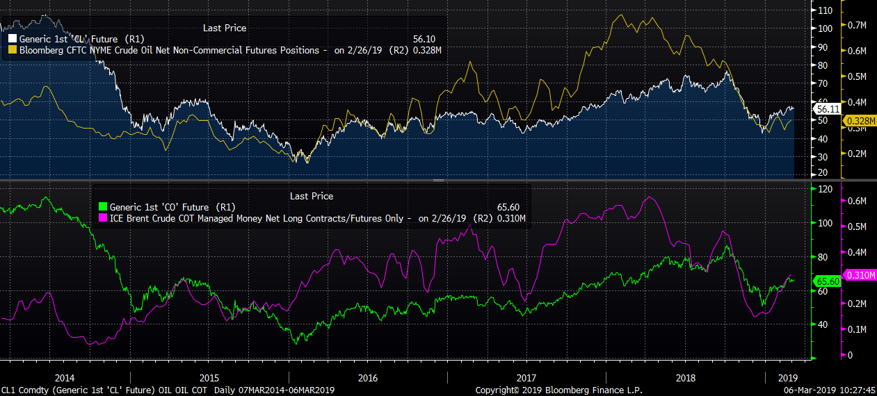 Poziționarea netă a prețului Brent indică în continuare prețuri mai ridicate. Săptămâna aceasta se vor publica cele mai noi date CFTC. Sursa: Bloomberg