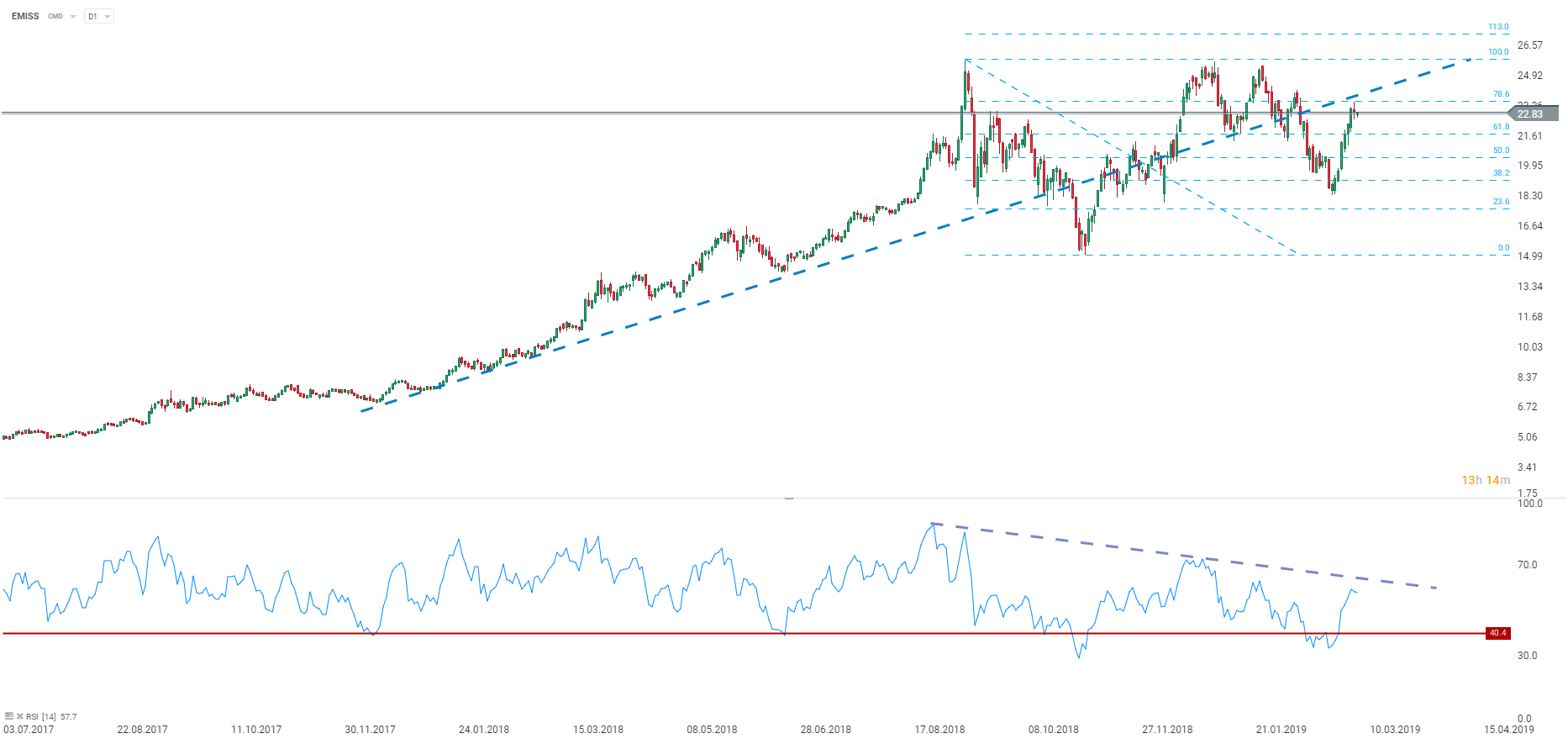 Prețurile EMISS se apropie de o zonă de supra-cumpărare. Sursa: xStation5