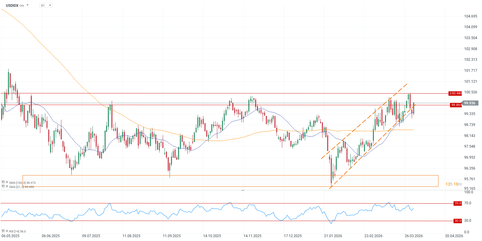 Evenimentul cheie al acestei săptămâni nu vor fi datele privind piața muncii din SUA, care vor fi publicate mâine, când majoritatea piețelor financiare vor fi închise, chiar înainte de sărbătorile de Paște. Cel mai important eveniment a trecut deja și a fost discursul lui Donald Trump adresat poporului american, în care urma să anunțe o mare victorie asupra Iranului și revenirea prețurilor scăzute la combustibili. De fapt, nimic de genul acesta nu s-a întâmplat, iar prețurile petrolului ar putea închide la cele mai ridicate niveluri de la începutul conflictului. Prețurile ridicate ale petrolului înseamnă o potențială revenire a inflației ridicate, ceea ce are un impact enorm asupra scăderii cotațiilor metalelor prețioase și a indicilor bursieri, dar, în același timp, influențează pozitiv dolarul american.