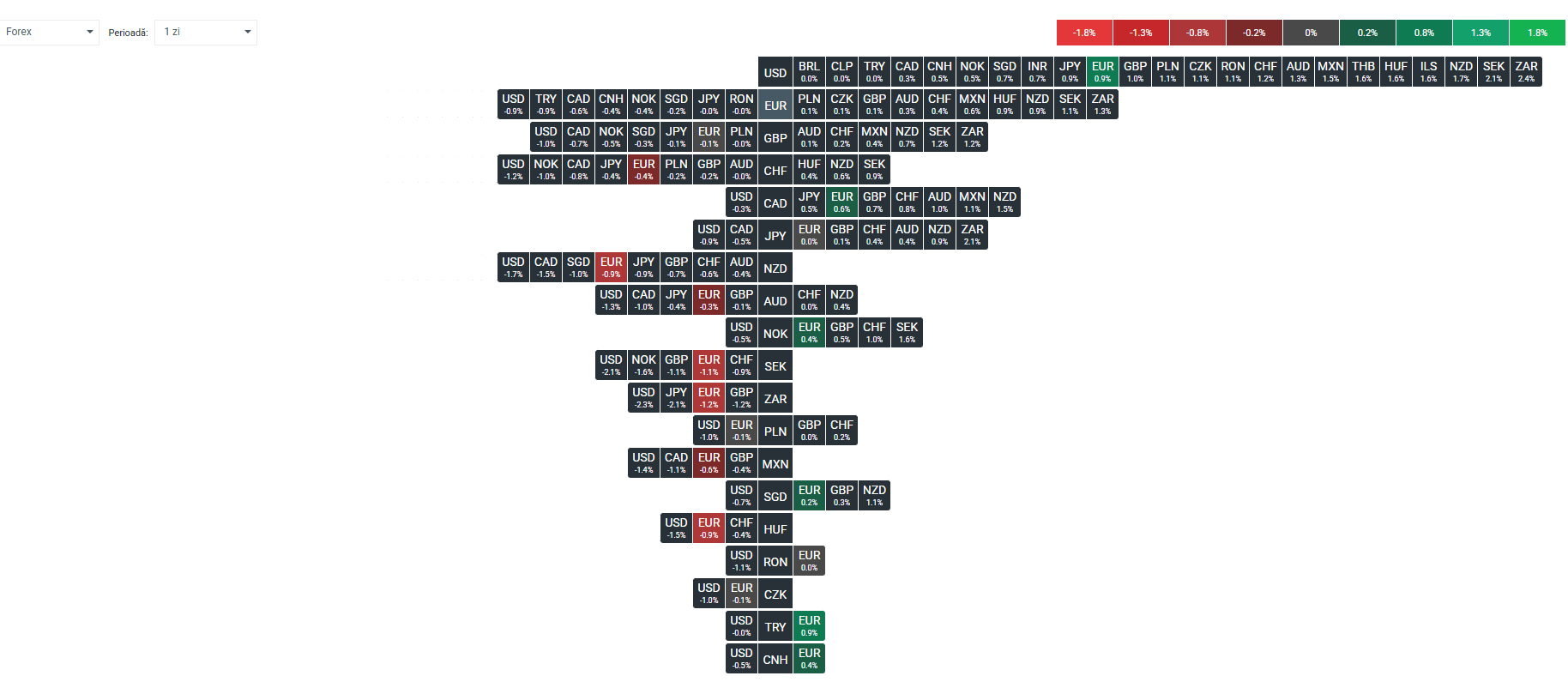 Între timp, țițeiul Brent și WTI pierd aproximativ 10,3% și, respectiv, 12,8%, iar prețurile lor au scăzut la aproximativ 94 și 95 de dolari pe baril, inversând o parte din creșterea anterioară legată de riscul unui blocaj în Strâmtoarea Ormuz. Interesant este faptul că petrolul înregistrează astăzi cea mai mare scădere de preț într-o singură zi din ultimii ani. Între timp, indicele dolarului USDIDX a scăzut cu aproximativ 0,9%, în timp ce aurul a crescut cu aproximativ 2,3%, iar argintul are o performanță și mai puternică, beneficiind atât de slăbirea dolarului american, cât și de îmbunătățirea sentimentului pe piața de acțiuni. Modelul de astăzi sugerează o rotație clasică de la pozițiile defensive în petrol și dolar către acțiuni, datorii de trezorerie și metale prețioase, aurul câștigând în principal datorită slăbirii dolarului american.