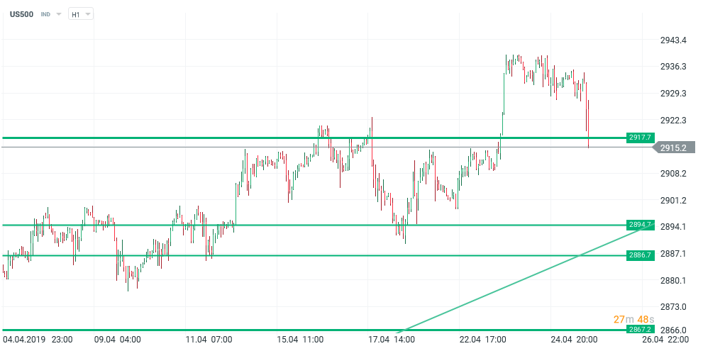 Profiturile raportate în SUA ar putea marca evitarea unui sezon de contracție a câștigurilor pentru membrii S&P500. Microsoft a oferit un profit de 1.14 dolari pe acțiune, cu 14% peste estimări, și cu o dezvoltare puternică pentru cloud, devenind singura companie listată care este în prezent evaluată la peste 1 trilion de dolari. Facebook a reușit să surprindă pozitiv în privința veniturilor din activităților continue, chiar dacă pregătirea pentru o amendă între 3 și 5 mld. USD este neașteptată, astfel încât acțiunile au deschis astăzi, în prima sesiune standard după raportări, cu peste 6% pe plus. Paypal și Visa, procesatori de plăți, au depășit la rândul lor rezultatele. Cu toate acestea, debutul sesiunii de astăzi a fost unul marcat de vânzări. La nivel macro, saltul solicitărilor de ajutor de șomaj la 230 de la 193 de mii în săptămâna anterioară nu sunt suficiente pentru a justifica reacția de vânzare, mai ales cu un ritm sănătos, de 0.4% lunar al creșterii comenzilor de bunuri de folosință îndelungată. Dinamica pare a fi ”importată” din China, unde bursa din Shanghai a pierdut peste 2 procente noaptea trecută, în urma re-evaluării șanselor unor noi programe de stimulare pe termen scurt. Guvernul ar pregăti reforme structurale, dar cu impact pe orizont mult mai îndelungat, și nu ar mai vedea motive de susținere amplă pe termen scurt. Pentru moment, deși supus unui episod corectiv, indicele US500 este pe trend ascendent, cu suportul la 2895 de puncte, rezistența fiind la 2927.