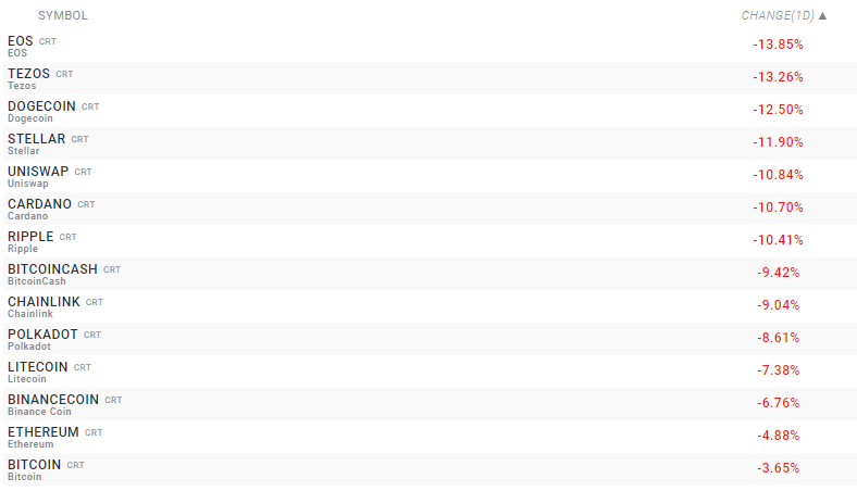 Bitcoin, precum și alte monede alternative se depreciază astăzi. Sursa: xStation5