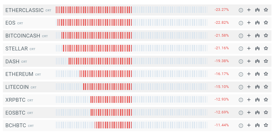 Majoritatea monedelor digitale ”se scufundă” astăzi. Declinurile în unele cazuri depășesc 20%. Sursa: xStation5