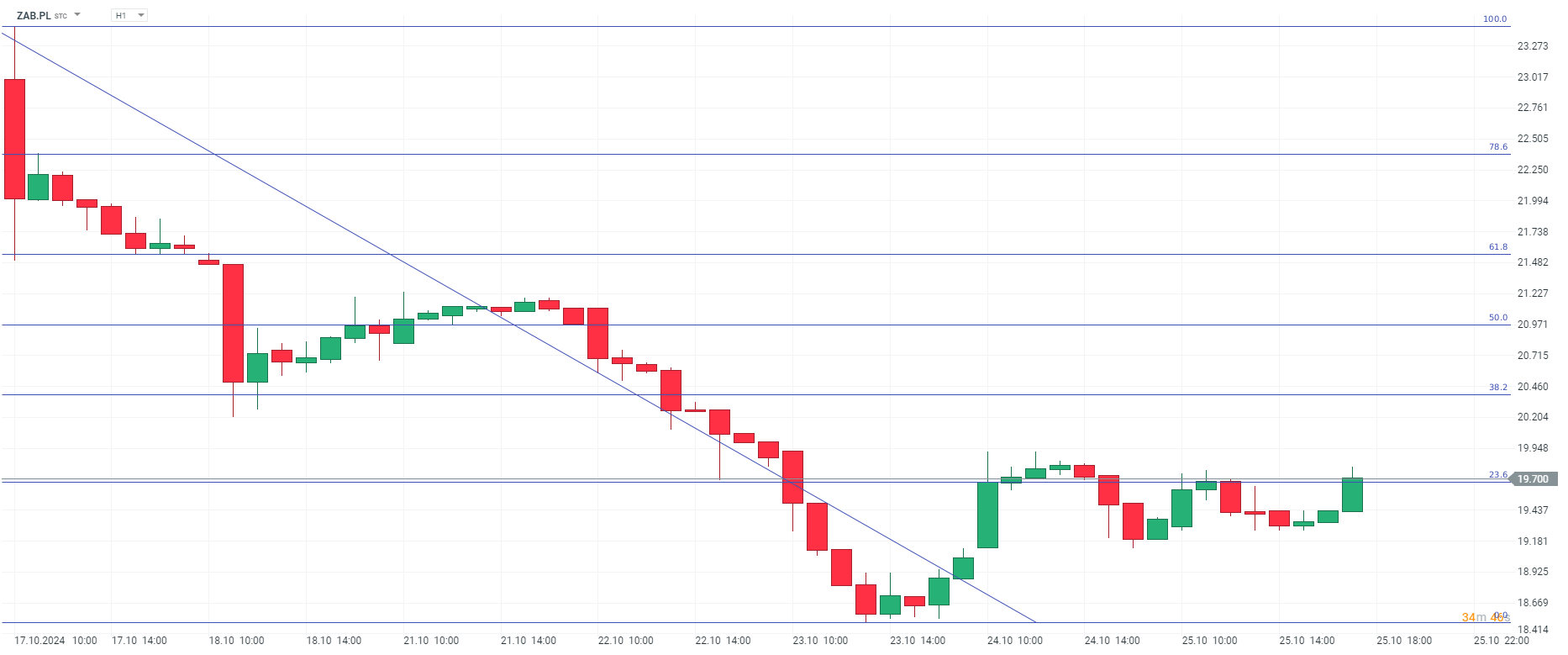 Cu toate acestea, există încă aspecte importante legate de listarea companiei, fiind al patrulea cel mai mare IPO din istoria WSE, Zabka a beneficiat de o atenție deosebită în țară. Ordinele pentru acțiunile sale au fost suprasubscrise în mare măsură. În prima săptămână de tranzacționare, Zabka s-a depreciat cu 15,91%, prețul acțiunilor performând sub pragul de 20 PLN, care pare a deveni un nivel de rezistență semnificativ. Prin urmare, putem afirma că debutul nu a fost cel așteptat de către investitori, probabil mulți investitori dorind să marcheze din profituri.