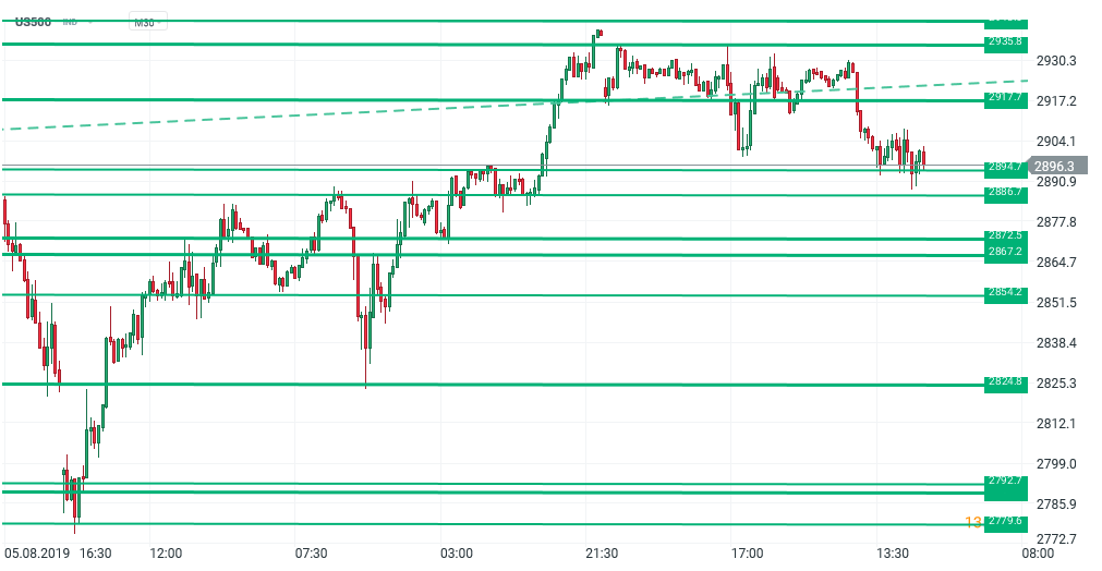 Cu toate că e aproape gol calendarul economic al sesiunii, în afara unor date referitoare la creditul de consum în SUA, bursa nu a stat deloc liniștită: US500 a pierdut aprox. 1.2% de la 10.30 pțnă la 19.40, minimele situându-se chiar mai jos. Tendița ar fi putut părea o corecție normală dacă nu am fi înregistrat, în spațiul unei singure ore, de la 11, peste 0.7% declin. Teama pare asociată cu situația din Hong Kong, deși nu e foarte clar de ce ar trebui să se resimtă pe indicii din SUA, tranzacționați la acea oră, futures? Lămuriri au venit pe parcursul zilei: prin vocea editorului Global Times s-a sugerat că China ar putea interveni în forță împotriva manifestațiilor și protestelor care durează deja de câteva săptămâni, și au dus, azi, la blocarea aeroportului. În feed-ul de știri al platformei xStation5 a apărut la 17.20 declarația liderului republican din Senat, McConnell: lumea întreagă privește, o intervenție violentă ar fi inacceptabilă. Astfel de comentarii, citite într-o cheie moderată, ating totuși o zonă delicată, și cel puțin nu îmbunătățesc șansele unei înțelegeri comerciale ample, dacă nu merg cumva chiar în sens invers. Astfel, putem citi reacția investitorilor ca fiind ghidată de prudență. Pe termen scurt, suportul de la 2894.7 ar merita atent urmărit, spargerea sa eventuală ar putea fi privită drept o vulnerabilitate temporară a instrumentului US500.