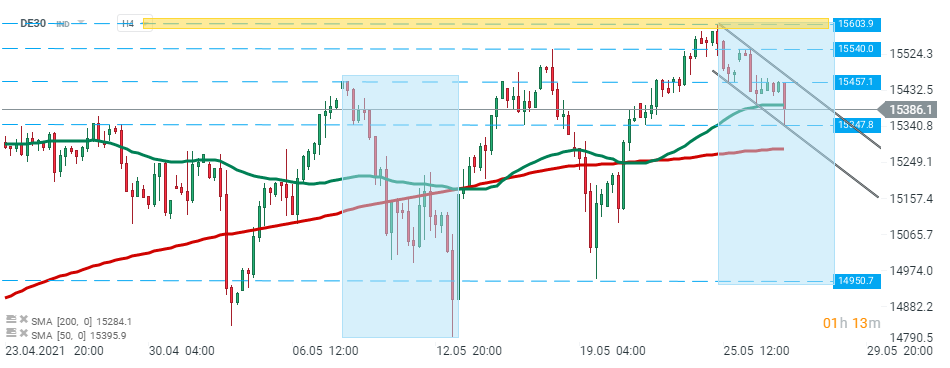 DAX a continuat să se îndepărteze de maximul istoric în sesiunea de astăzi, după ce datele recente GfK au arătat că moralul consumatorilor germani s-a îmbunătățit mai puțin decât se aștepta pentru iunie, consumatorii adoptând o abordare mai prudentă, în ciuda perspectivelor mai bune. De asemenea, problemele legale ale lui Bayern au avut o influență asupra sentimentului. Alți indici europeni se tranzacționează plat, în timp ce investitorii așteaptă datele privind cererile de șomaj și cifrele PIB din SUA .