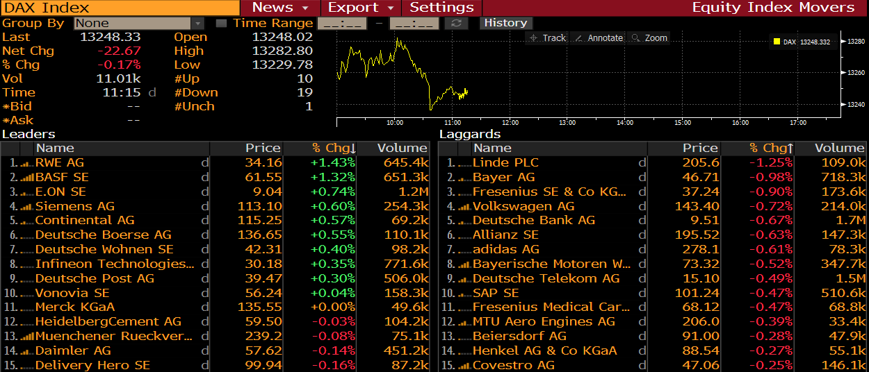 Membrii DAX la 12:15 ora României. Sursa: Bloomberg