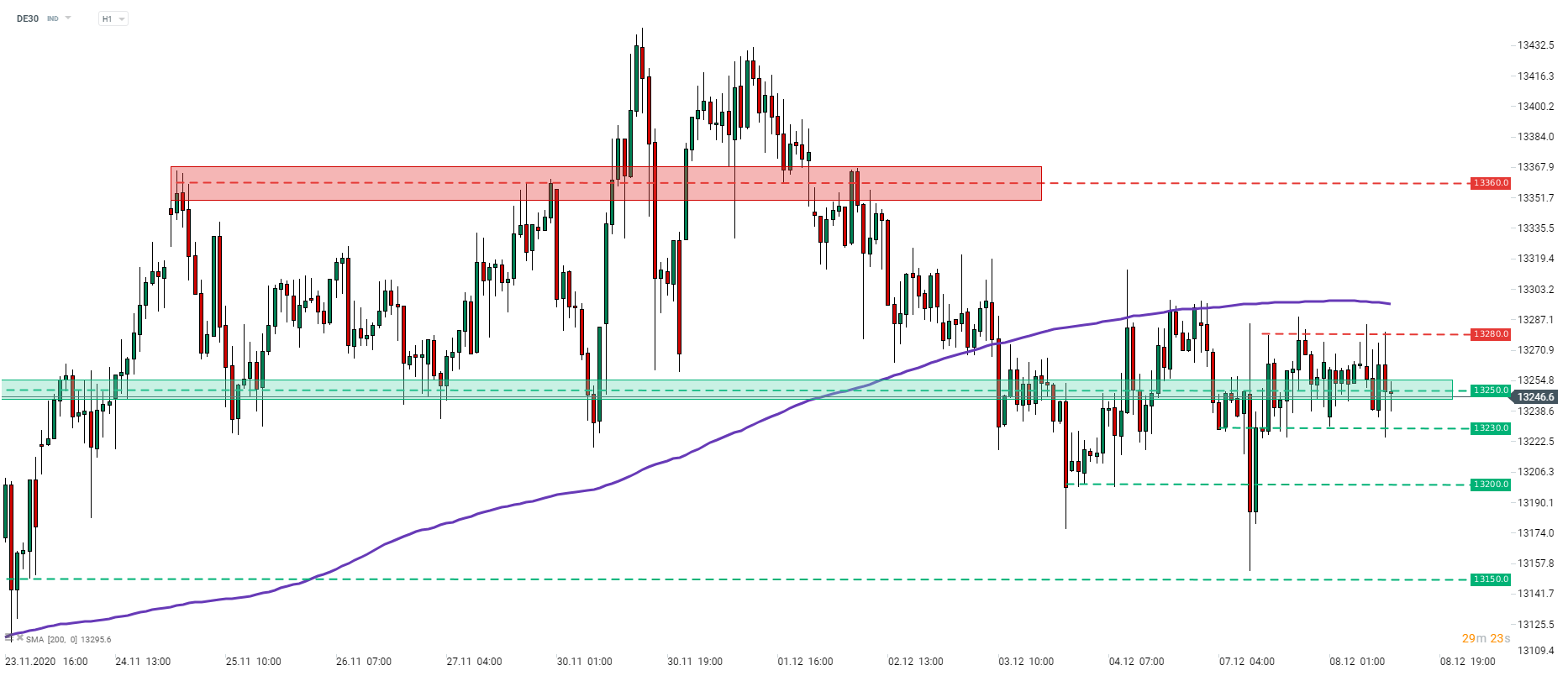 DE30 se tranzacționează într-un interval restrâns
