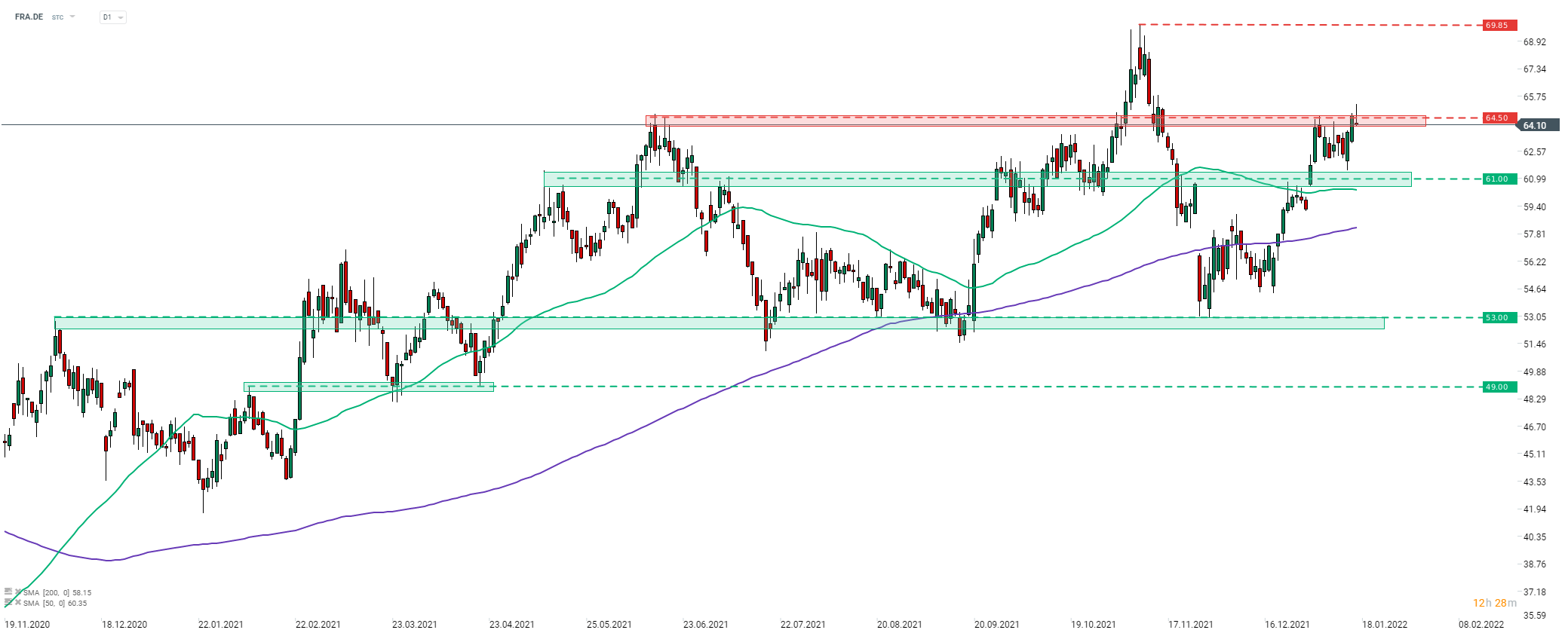 Fraport (FRA.DE) a raportat că 2,7 milioane de pasageri au fost deserviți de aeroportul din Frankfurt în decembrie 2021. Aceasta reprezintă o creștere de 204,6% față de decembrie 2020. Numărul de pasageri deserviți de aeroportul din Frankfurt pe tot parcursul anului 2021 a crescut cu 32,2% față de anul trecut, la 24,8 milioane în timp traficul aerian a fost cu 23,4% mai mare față de anul trecut.