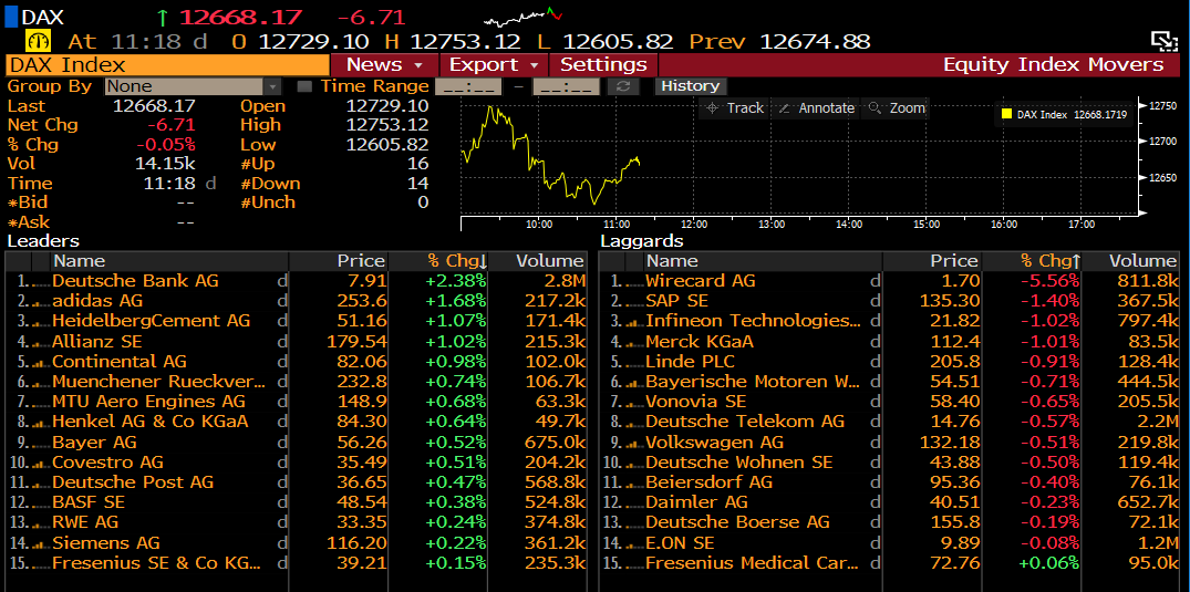 Membrii DAX la 12:18 pm ora României. Sursa: xStation5