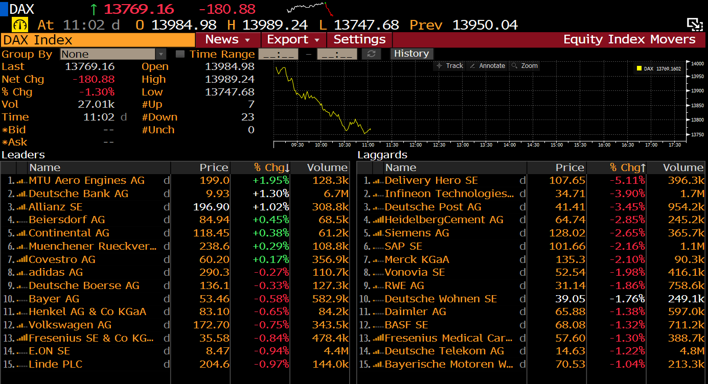 Membrii DAX la 12:02 ora României. Sursa: Bloomberg