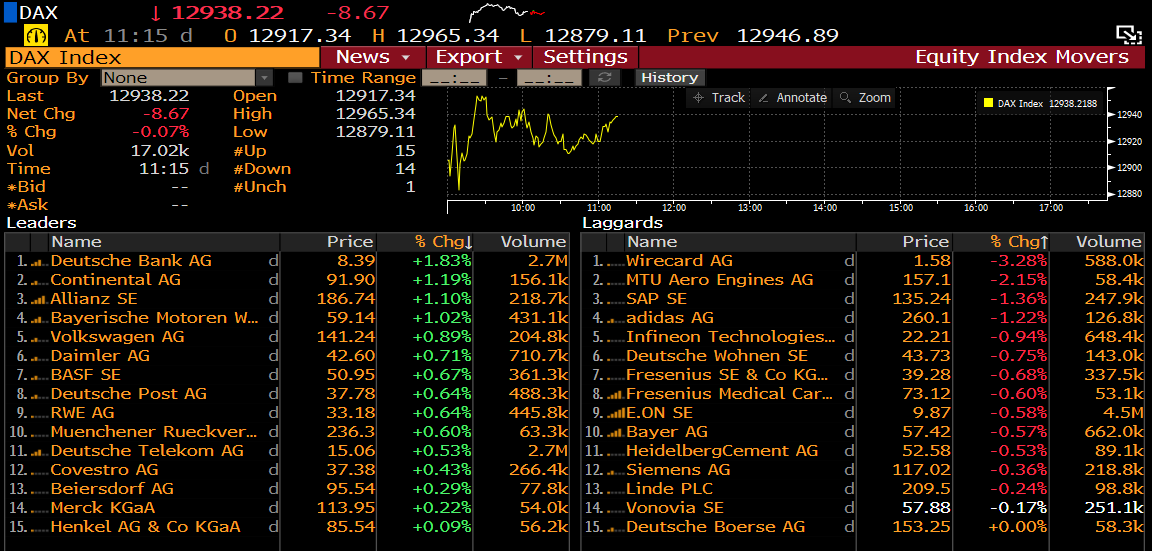 Membrii DAX la 12:15 pm ora României. Sursa: Bloomberg