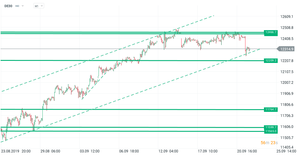 În discursul său, John Williams, președintele New York Fed a apărat ideea că răspunsul la creșterea rapidă a costului de finanțare pe termen scurt a fost unul adecvat și rapid, însoțit de succes, adăugând că ar putea apărea din nou probleme la finele trimestrului. Mesajul său a părut unul mulțumitor: atât piața din SUA cât și indicii europeni au recuperat, cu trecerea chiar în teritoriu pozitiv a S&P500. Pentru moment, DE30 rămâne în secvența ascendentă definită de linia de trend din august, însă fără a se desprinde hotărât de aceasta. Investitorii par dispuși a mai oferi o șansă burselor, sau măcar răbdare, în grade diferite, totuși: cotațiile sunt sensibil mai aproape de maxime istorice în SUA decât în zona Euro, reflectând evaluarea divergentă a stării celor două economii.