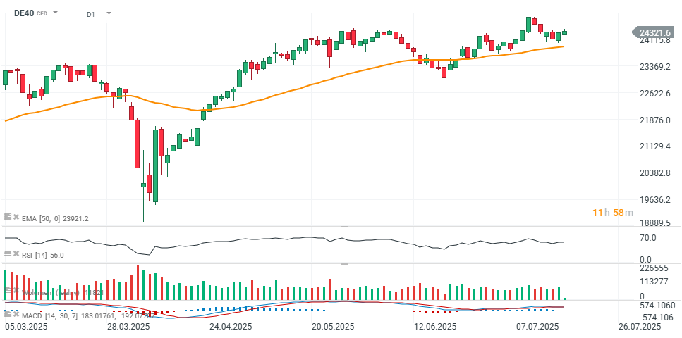 - Starea de spirit pe piața bursieră germană sugerează o continuare a tendinței ascendente, cu o nouă încercare de a reveni la maximele istorice recente.