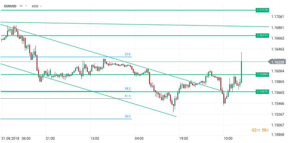 Ritmul de creștere a importurilor a depășit așteptările, ajungând la 261.2 mld. de dolari în iulie, în timp ce exporturile au fost mai jos cu 2.1 mld. dolari față de iunie, generând o surpriză negativă la nivelul deficitului, adâncit cu peste 4 mld. USD, la 50.1 mld. dolari. Tema e politic sensibilă, și nu diminuează deloc riscul de a fi anunțate sancțiuni comerciale impuse de SUA Chinei. În cazul EURUSD, datele au oprit avansul dolarului. Datele slabe din China și scăderea comerțului cu amănuntul cu 0.2% în zona Euro, elemente nefavorabile monedei unice, nu au mai contat, însă, după comentariile neașteptat de ”dovish” (blânde în privința politicii monetare) ale lui Bullard: Fed ar trebui să se abțină de la o nouă majorare a dobânzii, a afirmat acesta puțin după ora 16. Față de scenariul așteptat de a vedea încă 2 majorări anul curent, diferența e spectaculoasă, și, deși Bullard nu votează, piața a reacționat puternic, punând la îndoială parcursul așteptat al dobânzii, dar cu un rol probabil jucat și de algoritmii de tranzacționare care procesează rapid conținutul fluxului de știri.