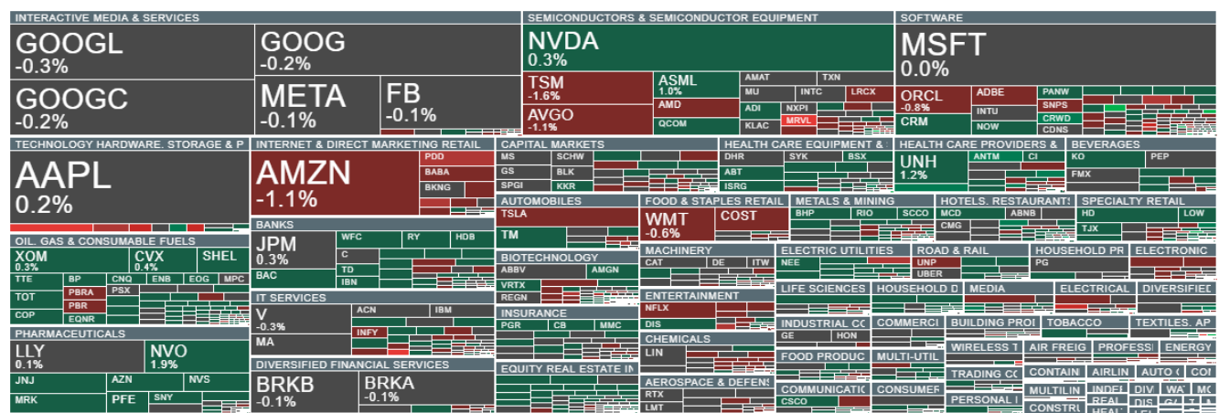 Companiile din S&P 500 nu înregistrează prea multe schimbări la deschidere. Taiwan Semiconductor Manufacturing (TSM.US) pierde aproape 2%. Aproape 10% pierde producătorul de cipuri Marvell Technology (MRVL.US), după rezultate dezamăgitoare. Sursa: xStation5