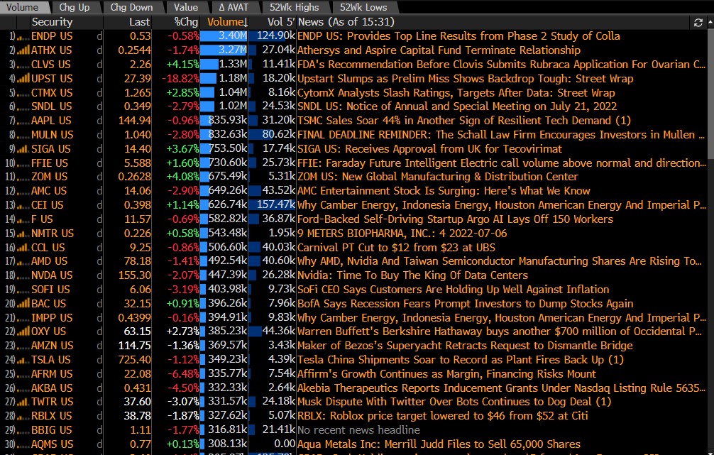 Cele mai active titluri; SUA. Sursa: Bloomberg