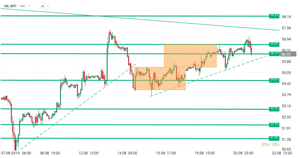 Dacă vor fi reduse la 0 livrările sale de petrol, afirmă Iranul, canalele maritime majore nu vor mai avea același grad de siguranță ca înainte. Este o avertizare dintre cele mai severe în privința politicii americane de sancționare a statului producător de petrol, a cărui economie se află în suferință tocmai din acest motiv. Tancul petrolier Grace 1, care se îndreaptă spre Grecia, a devenit un simbol al încercării Iranului de a găsi cumpărători pentru resursa sa principală, în ciuda sancțiunilor impuse de SUA. Eliberat după mai multe ”peripeții”, vasul ar putea încerca un transfer al cantităților transportate spre un alt vas, în direcția Siria, sau ar putea urma eventual un alt parcurs, în intenția de a oferi mult așteptata valută de care are nevoie Teheranul. Ministrul iranian Zarif a afirmat chiar că la comportamentul ”impredictibil” al SUA, răspunsul va fi la rândul său ”impredictibil”. În prezența unor astfel de comentarii, ar părea că prima de risc pe care o include petrolul, aflat în revenire lentă (2.4% la 14 august, ora 16 până acum, 21 august ora 18.50) deși au fost și unele trepidații, este insuficientă. E drept că stocurile în scădere de 2.7 mil. de barili sunt umbrite de mărirea cu 2.6 mil. a produselor derivate în SUA, potrivit raportului DOE, care arată o imagine mai puțin favorabilă prețului față de estimările API de ieri seară. Dar revenirea lentă ar putea avea de-a face cu optimismul ținut în parte în frâu al altor segmente de piață: așteptările pentru o tăiere de dobândă masivă în SUA s-au diminuat, eufoaria reformei ratei de dobândă (LPR) a Chinei de asemenea, nu este clar dacă discuțiile despre tăieri de impozite sunt de luat în seamă. Fără a uita totuși că, pe orizontul îndepărtat, comerțul global tinde să încetinească, chiar pe seama măsurilor vamale deja anunțate, în timp ce industria o zona ”întunecată” din Germania până spre China și SUA. Astfel, trendul petrolului este gradual ascendent, și nu oferă o garanție pentru depășirea liniei descendente, valabilă din aprilie încoace, aproximativ în zona 57.70 pentru această sesiune. Suportul se află la 55.73 azi. Între cele 2 linii, o convergență rapidă ne sugerează că ritmul e aproape de o schimbare: să se întâmple oare, vineri, deodată cu larg-așteptatul discurs al lui Powell? este posibil, dar și eventuale incidente în regiunea strâmtorii Ormuz sau pe plan mai larg, între Iran și Vest, ar impacta semnificativ cotațiile. Pentru moment, traderii par a avea bune motive de a nu se supra-entuziasma: fără susținere geopolitică sau monetară (Fed, prin vocea lui Powell) trendul larg descendent nu va fi ușor de depășit.