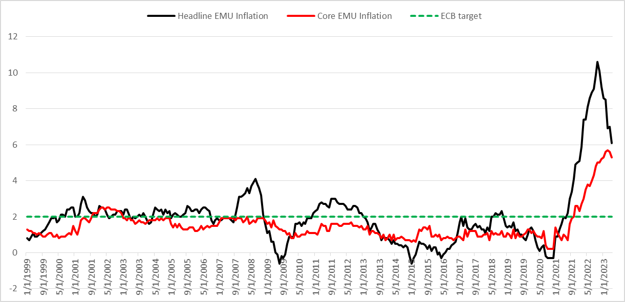 Inflația din Zona Euro a început să încetinească, dar rămâne semnificativ peste ținta BCE. Sursa: Bloomberg, XTB Research