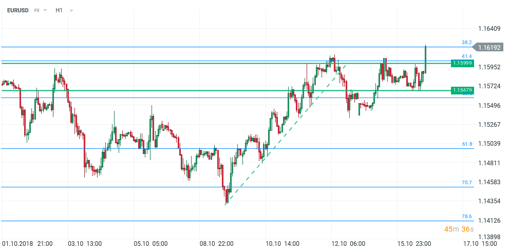 În zona Euro, surplusul comercial a crescut la 16.6 mld. EUR, de la 12.6 mld. luna trecută. Vestea bună (surplusul de cont curent este un semnal de forță, fiind un element pozitiv pentru EUR, deși, într-o perspectivă mai largă, poate însemna dificultăți în discuțiile comerciale cu SUA) nu a susținut EURUSD. Indicele realizat de ZEW apărut tot la ora 12 a frânat la -24.7 puncte pentru Germania și la -19.4 pentru zona Euro. Sondajul a reliefat o scădere a încrederii investitorilor instituționali și analiștilor la minimul din iulie, valorile fiind regăsite anterior abia în august 2012. Un declin de peste 14 puncte este foarte adânc, ZEW remarcând faptul că o astfel de erodare abruptă s-a mai petrecut doar o dată în istoria recentă, după votul de separare de UE al Marii Britanii. După ora 16, însă, veștile despre o eventuală acțiune a Senatului SUA în problema jurnalistului dispărut la Istanbul au dus la spargerea reperului 1.16. Planul geopolitic pare a-l domina în continuare pe cel macroeconomic.