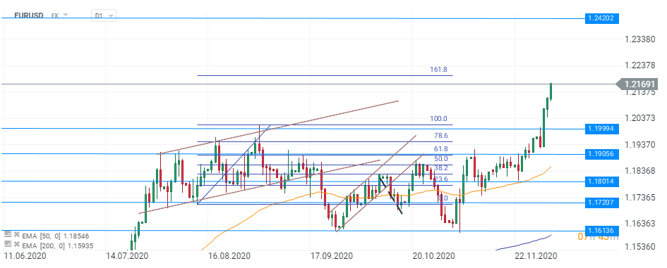 Investitorii tind să aștepte cu încredere un pachet de stimulente din SUA, ceea ce ne sugerează că abordarea acestora continuă să fie pozitivă. În acest moment, piața vizează continuarea ignorării riscurilor negative, concentrându-se asupra evoluțiilor pozitive referitoare la vaccin și la pachetul de stimulente fiscale. În plus, pe măsură ce ne apropiem de sfârșitul anului, atenția s-ar putea orienta către mesajele și comunicările Rezervei Federale și a administrației SUA.