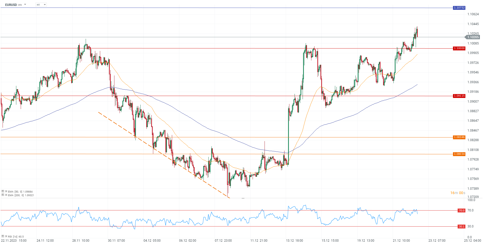 Cea mai populară pereche valutară își menține tonul ferm vineri și avansează până la maximul din 10 august, la 1,10402, după ce joi a înregistrat o creștere de 0,65% și marcând prima închidere zilnică peste bariera psihologică de 1,10 de la începutul lunii august.