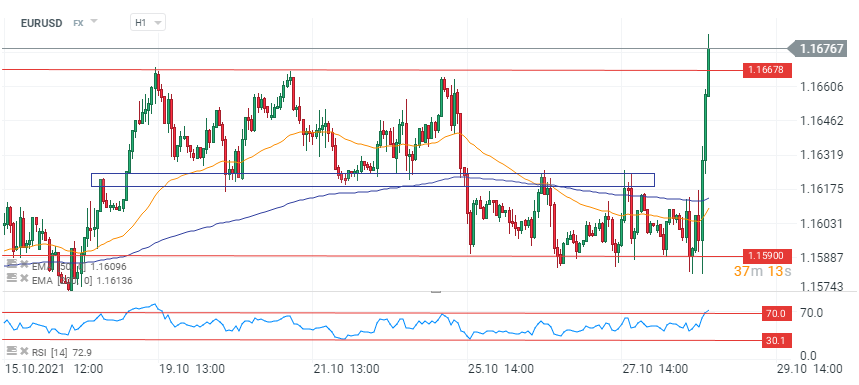 Președintele Băncii Centrale Europene, Christine Lagarde, a respins așteptările pieței privind majorarea ratelor de dobândă anul viitor, chiar dacă inflația se va dovedi mai ”încăpățânată” decât se anticipa inițial. Pe de altă parte, peste ocean, datele macroeconomice au fost mixte. Cererile săptămânale pentru ajutor de șomaj au scăzut mai mult decât se prognoza, în timp ce datele PIB pentru Q3 au dezamăgit.