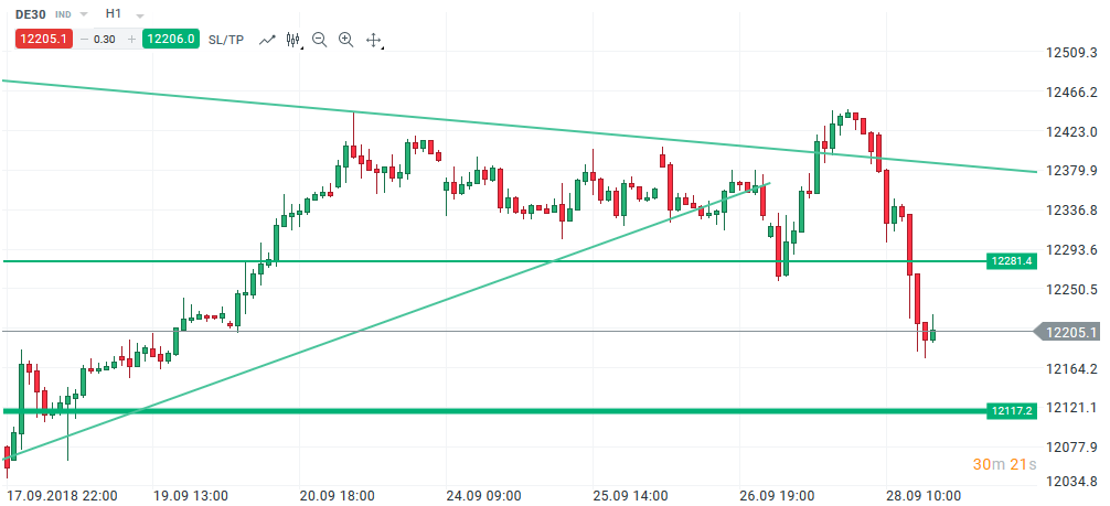 Noaptea trecută a devenit limpede că guvernul italian nu se teme de reacția piețelor: ținta de deficit de 2.4% este în zona de disconfort a investitorilor, care se tem că datoria va deveni nesustenabilă în condițiile în care dobânzile, în prezent foarte joase, vor fi ridicate anul viitor de către BCE. În plus, o anume marjă de siguranță ar putea fi erodată printr-o estimare prea optimistă a veniturilor bugetare. Dobânzile la titluri de stat italiene pe 10 ani au crescut cu 0.35 puncte la ora 16.24, până la 3.26%. Alunecarea EUR în fața dolarului american a fost influențată de aceleași vești care au depreciat și bursa germană (deși într-o măsură mult mai mică decât cea din Italia, care s-a apropiat de -5% pe futures, vs. aproape 2% pentru DAX). A devenit limpede că stresul generat de Italia poate capta atenția traderilor europeni, și investitorii, preocupați nu doar de aspecte economice, ci și de viitorul relațiilor comerciale cu SUA, au preferat să se adăpostească, limitându-și deținerile de active de risc. Pe termen scurt, sesiunea din SUA ar putea aduce o tendință corectivă, pe seama unor eventuale marcări de profit, dar și provocări suplimentare, ulterior: este programat un vot deosebit de mediatizat pentru o poziție liberă în cadrul Curții Supreme de Justiție a SUA. Este de menționat faptul că inflația de bază (core) a fost sub așteptări atât în zona Euro (0.9% față de 1.1%) cât și în SUA, unde PCE Core nu a avansat lunar, față de așteptări pentru 0.1%, și acelea în încetinire de la 0.2% anterior. Aspectele pozitive ale unei inflații scăzute sunt parțial diminuate de creșterea de 0.3%, lunar, a veniturilor, egalând avansul cheltuielilor, dar sub așteptări. În ultima zi a lunii, eventuale susțineri ale acțiunilor din SUA (fenomenul ”window dressing” al fondurilor care, uneori, ”cosmetizează” portofoliile) nu oferă garanția unei închideri pozitive, având în vedere informațiile de ordin fundamental și politic dezbătute anterior.