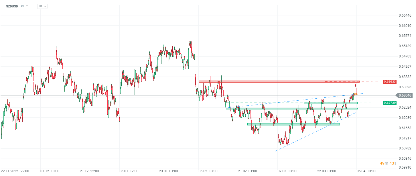 NZDUSD se bucură de o volatilitate ridicată în urma unei creșteri mai mari decât se aștepta a dobânzii din partea Băncii de Rezervă a Noii Zeelande (RBNZ). RBNZ a anunțat miercuri o creștere a dobânzii cu 50 de puncte de bază, împingând rata oficială în numerar la 5,25%. Acest lucru vine după o creștere a ratei cu 50 de puncte de bază în februarie. Piețele monetare, precum și economiștii se așteptau ca RBNZ să încetinească ritmul de înăsprire la creșterea dobânzii cu 25 pb la o întâlnire de astăzi, dar nu a avut loc așa ceva. Mai mult, RBNZ a menționat într-o declarație că va fi necesară o înăsprire suplimentară pentru a reduce inflația la ținta de 1-3%. Inflația din Noua Zeelandă a fost de 7,2% față de anul trecut în Q4 2022. Așteptările ratei de vârf RBNZ au trecut de la 5,25% în iulie la 5,4% în august.