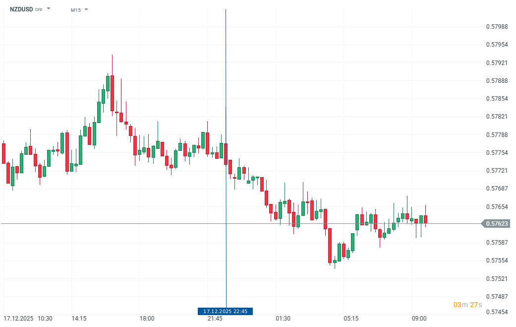 - Reacția pieței valutare: Reacția NZD a fost moderată până la ușor negativă; NZDUSD a scăzut spre 0,5760 după o scurtă creștere.