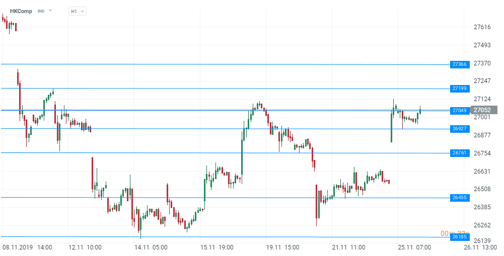 În acest context constructiv pentru piețe, indicele bursier din Hong Kong iese în evidență, înregistrând printre cele mai bune performanțe la nivelul acestei clase de active, avansând la momentul scrierii cu aproximativ 1,90%. Această evoluție remarcabilă a fost alimentată de rezultatul alegerilor locale din Hong Kong, în timpul cărora candidații pro-democrație au obținut o victorie categorică: aproape 90% din cele 452 de locuri de consilieri regional. În plus, trebuie să remarcăm și prezența la vot record de peste 71% (aproximativ 3 milioane de cetățeni) care pare să fi fost determinată de neliniștea de pe plan local. Aceste rezultate sugerează nemulțumirea legată de guvernul actual și indică o susținere pasivă a protestelor, cetățenii dorind obținerea libertății și a democrației. Guvernul actual a declarat că respectă rezultatele și își dorește ”continuarea situației liniștite și sigure”.