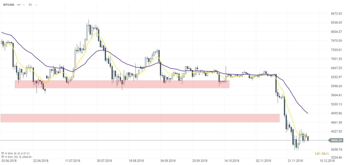 - Bitcoin (BITCOIN în xStation5) încearcă să se mențină la aproximativ 4000 de dolari