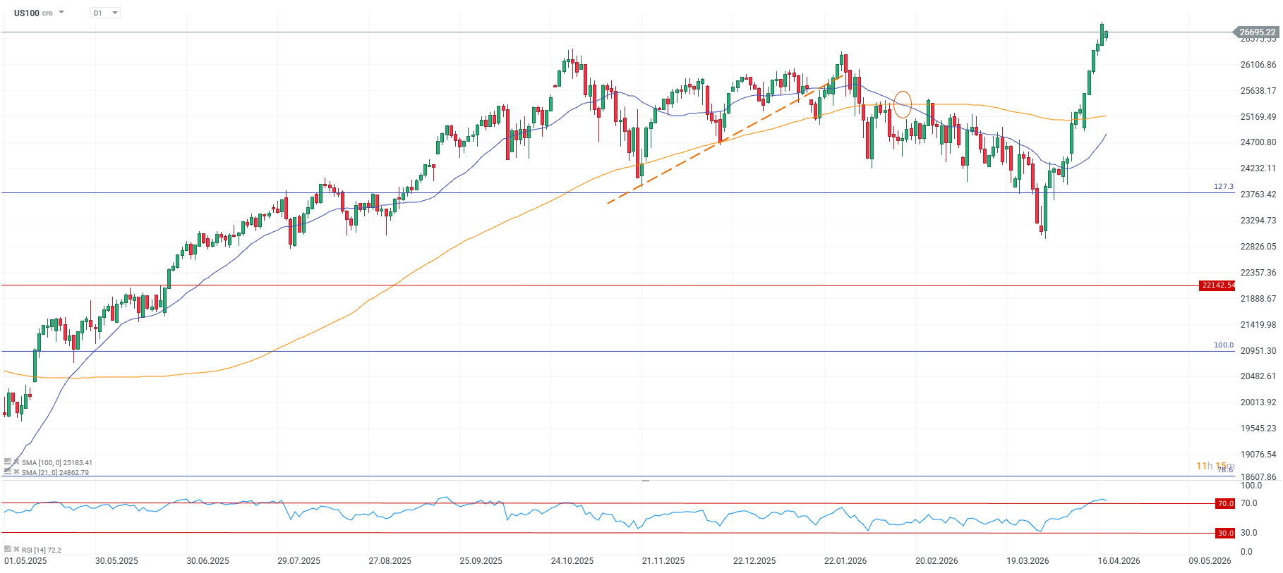 Deși geopolitica rămâne în centrul atenției la începutul acestei săptămâni, există câteva rapoarte financiare cheie de urmărit, inclusiv prima actualizare a rezultatelor din primul trimestru a celor „Magnifici 7”. 88 de membri ai S&P 500 vor raporta rezultate săptămâna aceasta, inclusiv Tesla și Boeing, alături de Intel. Până acum, sezonul de raportare a rezultatelor a fost puternic, 86% dintre companiile care au raportat rezultate depășind așteptările.